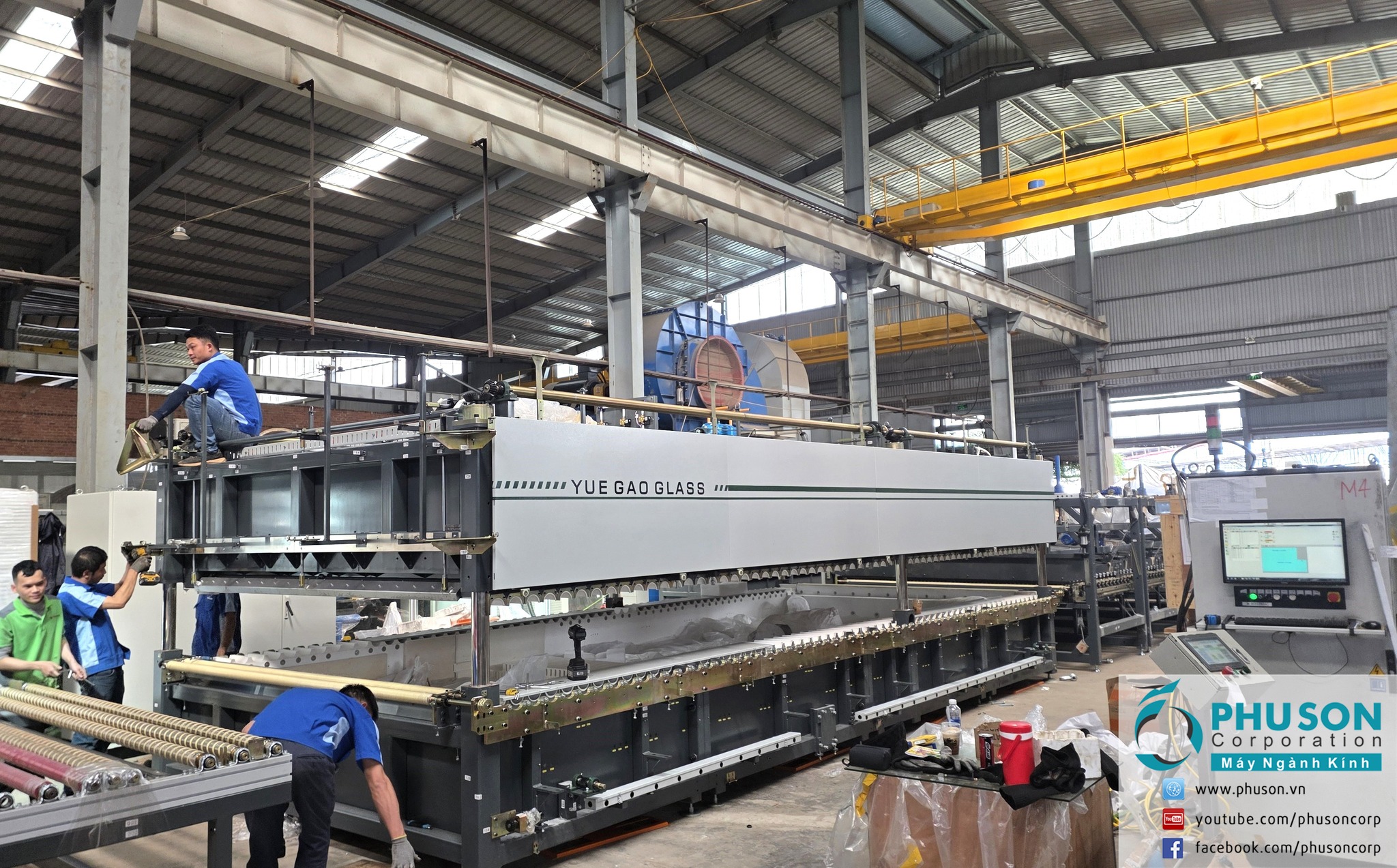 PHU SON Corporation bắt đầu lắp đặt những mảnh ghép đầu tiên dây chuyền tự động sản xuất kính cường lực thứ 3 của YUEGAO tại nhà máy số 1 của một khách hàng lớn rất thân thiết lâu năm. Với năng lực, kinh nghiệm gần 30 năm và trình độ chuyên môn hoàn hảo, các kỹ sư PHU SON Corporation HN và HCM luôn chủ động 100% các công việc lắp đặt, huấn luyện đào tạo, chuyển giao công nghệ và hậu mãi 24/24h mà không cần sự hiện diện bất kỳ của các kỹ sư chuyên gia từ nhà chế tạo. Điều này giúp đảm bảo tiến độ cùng chất lượng lắp đặt và chất lượng hậu mãi được thực hiện lập tức 24/7 một cách chuyên nghiệp và hiệu quả trong bất cứ điều kiện hoàn cảnh nào. Tất cả đều mang được lợi ích và giá trị tối đa cho khách hàng, nhà chế tạo và chính nhà cung cấp.